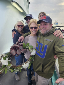 Afterward, all the boats sailed out of the harbor to the Bell Buoy. David DaSilva played Taps on the “Hurry Up” boat, while the families threw wreaths into the water for their loved ones who died in the past year, who worked on the water. This year, these included Capt. Barry Kohlus, Capt. David Kohlus, Capt. John Gallo, Butch Maher, Joe Billotto, Capt. Ed Beneduci, Phil Gamble, Peter Anderson, John Wanag, Capt. Jim Jolly, Douglas Colbath, James Hunt, Ralph Cusimano, and T-Bone Tiernan Crowley.
