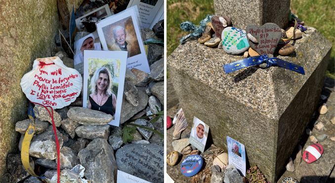 The Camino silently offered plenty of answers, although not always the ones I expected or desired. The grief, the pain of losing someone so close to you—the person you automatically reach out to, through thoughts and deeds—made it inexplicable and inconsolably confusing. I needed this time alone to explore all the avenues that this meditative state on the Camino offered to me. The pathway led me past many religious grottos, memorials, chapels, and healing fountains, where I quickly figured out that I could honor my wife Phyllis by leaving several tributes to her as a remembrance at these shrines for all to see. Also as important was the prospect of trying to figure out who the new me was going to be, and how I would develop alone—without the security of knowing she was around to turn to for loving support. That, being equally as difficult, is turning out to be a life’s work in progress, without her by my side.