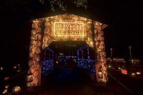 Back on your walk, meet life sized dinosaurs and try not to get stuck in the 24 foot spider web, and then gaze at the stars in the Pumpkin Planetarium, which watching a working carousel. To highlight their 20th year, there is a giant birthday cake and celebration arch to mark the occasion. If you recall the childhood favorite tale by Washington Irving, The Legend of Sleepy Hollow, your imagination of the eerie Headless Horseman comes to fruition when you catch a glimpse of him and hear the thundering gallop of his horse! One can easily understand how the gangly school teacher in the story, Ichabod Crane, was frightened hearing this in the dark of night! The walk through the Pumpkin Blaze is at your own pace and usually takes visitors about 30-45 minutes and there is still ample time to stop for fall themed sweets and snacks at Café Blaze or browse the Glaze Boo-tique for souvenirs and local finds. Reminder: Bundle up for the crisp night air and wear comfortable walking shoes. All proceeds from Blaze and other Halloween events support the programs of Historic Hudson Valley, a non-profit education organization. Directions GPS address: Van Cortlandt Manor 525 S Riverside, Croton-on-Hudson, NY 10520 https://hudsonvalley.org/events/blaze/