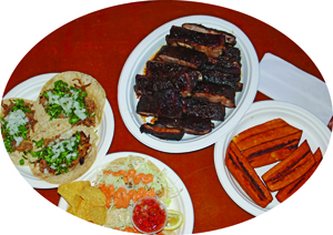 The Tacos with either steak, chorizo, beef brisket, pulled pork, chicken, pork, chicken Tinga, or grilled vegetables are served on 3 corn tortillas; we had them with Skip’s amazing pulled pork. Another choice is a pair of Fish or Shrimp Tacos topped with shredded cabbage and chipotle aioli. I’ve had many different flavors and have loved them all, this time in addition to the pulled pork we tried the shrimp which was perfectly prepared with a generous portion of shrimp. We also enjoyed Skip’s St. Louis Style Ribs from the Barbeque selections. These fall off the bone ribs are served dry and so tender and full of flavor that although it’s available, no extra sauce is needed. As noted by our friends, even the coleslaw and potato salad are a fresh and tasty accompaniment.