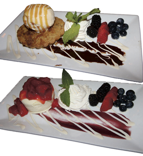 My theory is that it’s always nice to enjoy a little sweet after such a satisfying meal, so don’t forget to leave some room and inquire about the evening’s selection. Our delectable and inventive indulgence included an Apple Crumble, Chocolate Lava Cake, and Cheesecake. The light crust of the crumble was a perfect choice to complement the sweet apples baked with a delicate crumble topping and a swirl of caramel, which was accompanied by fresh berries and vanilla ice cream. The light and creamy cheesecake was adorned with a fresh strawberry compote creating a wonderful alternative to typical cheesecake variations. For the chocolate cake lovers, just a forkful of the warm lava cake exposes the chocolaty goodness of the lava center. The addition of vanilla ice cream and berries round out this tasty chocolate experience.