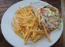 The Fish & Chips is a large portion of crisp and tender cod fillet with remoulade sauce and an abundance of fries making this dish an all-time favorite. For pasta, we had the special Shrimp Pasta a la Vodka. With a bowl of perfectly cooked pasta blended with a tasty a la vodka sauce, and topped with an abundance of tender shrimp, it was an excellent choice. Finally, due to the recommendation of our waiter Greg, the Chicken Gyro special was calling me. This traditional Greek favorite, has a large pita wrapped around tender grilled chicken with lettuce, tomato, and onion all dressed with Chef George’s homemade tziki sauce.