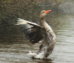 Don’t worry folks about these birds in the cold weather. They all do excellent in the winter, and are considered a cold hardy species. Swans will often fan plums of ground snow with their massive wings and literally shower themselves with the white powder. Don’t worry about their feet either. Waterfowl has an awesome “counter current” system where it uses its warm body blood to cool down the blood before it reaches the feet, which has little soft tissue. The cold feet release very little body heat, and just enough warm blood is pumped through to keep the feet from frostbite. Then, the blood is warmed as it leaves the feet and circulates back to the heart. Sometimes they cut the warming time in half by temporarily eliminating an appendage, which is why they often stand on one leg while the other is tucked away.